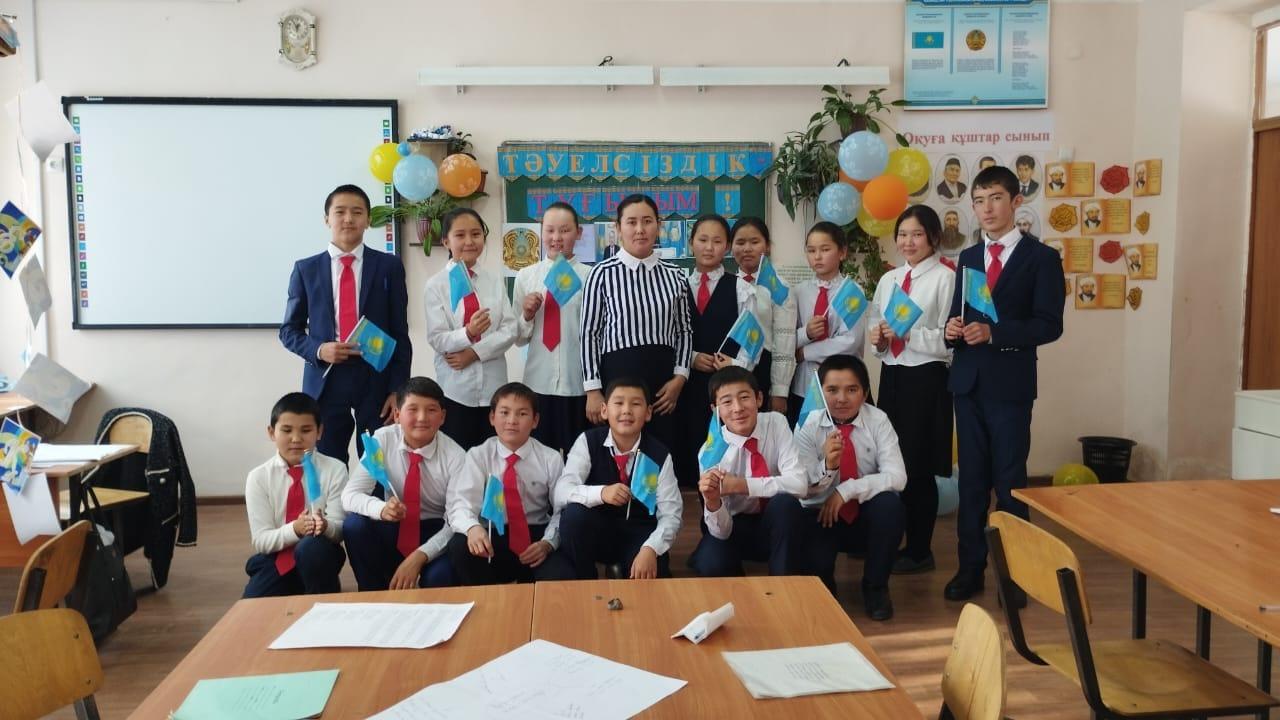 7 "А" сынып жетекшісі Азимова Гүлайна "Тәуелсіздік-тұғырым" тақырыбында ашық тәрбие сағатын өткізді.