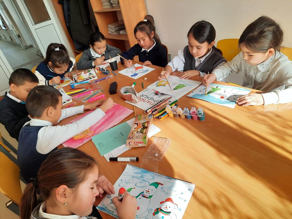 Үйірменің мақсаты: Оқушыларды әдемілікке тәрбиелеу,қиялдарын ұштау,ой-өрісін дамыту,эстетикалық тәрбие беру. Үйірме оқушылары "Кел, Жаңа жыл біздерге" тақырыбында өз қылқаламдарынан шыққан туындыларын жаңа жылға тарту етті.