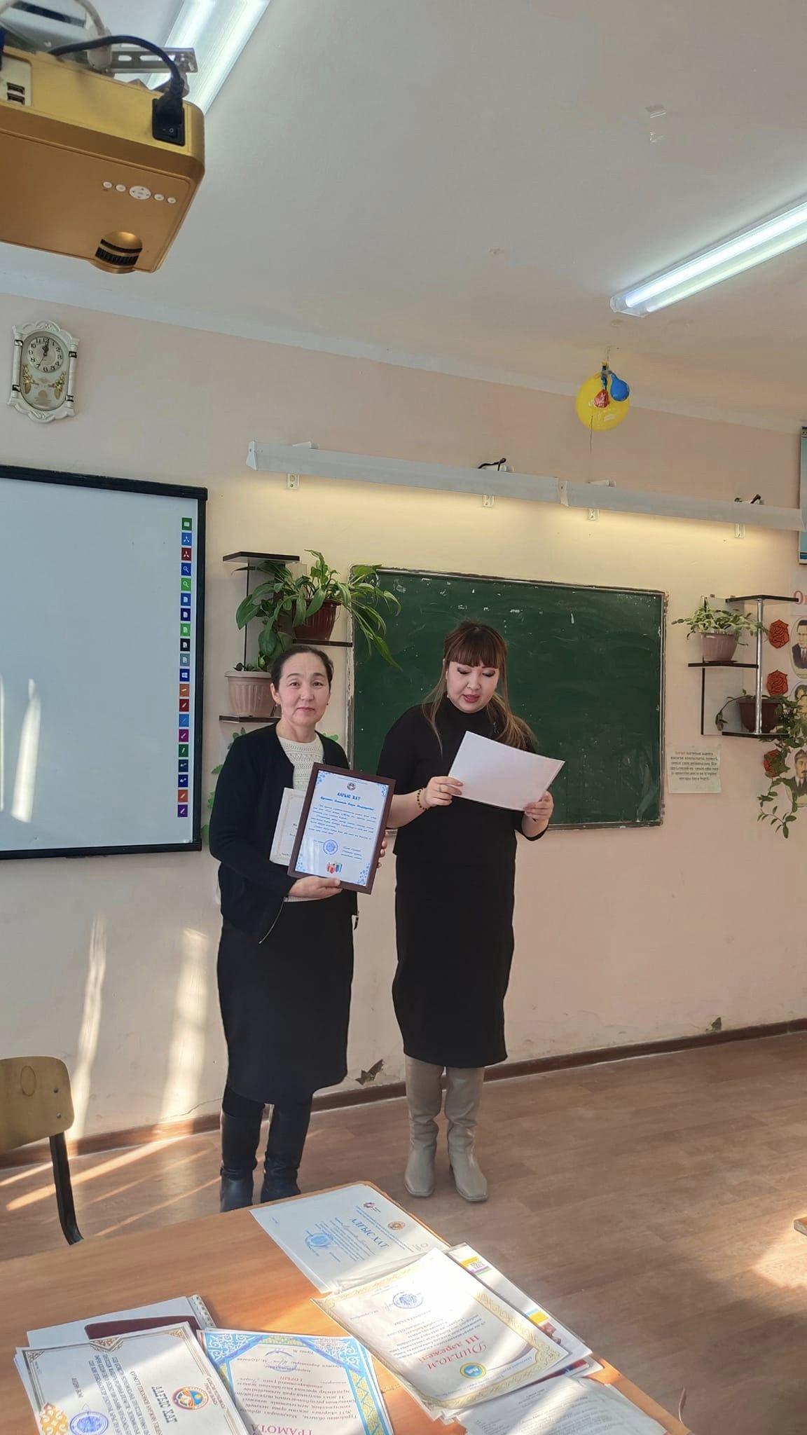 Пед.кеңесте мектеп директоры М.Даубаева мұғалімдерді жаңа жылмен құттықтап, күн тәртібімен таныстырды. Педагогикалық кеңесте оқыту мен тəрбиенің негізгі мəселелері талқыланып, кездесетін кедергілермен күресу үшін ғылыми дəлелдері бар ұсыныстарды тəжірибеге енгізу жолдары белгіленді. Пед.кеңесте ІІ - тоқсанның қорытындысы бойынша директордың оқу ісі жөніндегі орынбасары М.Джумаеваның есебі тыңдалды , тәрбие саласы бойынша атқарылған іс-шаралармен директордың тәрбие ісі жөніндегі орынбасары П.Байменова есеп беріп өтті. 11 сыныптардың ҰБТ көрсеткіштерімен кәсіби бағдар беруші педагог Ж.Бекжанова таныстырды. Қазақ тілі мен әдебиеті пәні мұғалімі Г.Мырзақұлова «Тіл туралы заң және оның орындалуы» тақырыбында баяндамасымен таныстырды. ДТІЖО Г.Құдайбергенова «Балалар конвенциясы», оның негізгі баптары мен тарауларына тоқталып өтті. Мектебіміздің логопеді А.Айтжанова атқарылған жұмыстарына есеп берді. Жартыжылдықтағы жетістіктер мен атқарылған жұмыстар жақсы деп бағаланды. Мұғалімдердің жетістіктері аудандық , облыстық , республикалық мақтау қағаздармен марапатталды. Жеке авторлық бағдарламасы республикалық деңгейінде таратылған технология пәннің мұғалімі Ш.Тұрғынбаев , облыстық деңгейде өткізілген дебатта ағылшын тілінде өте жақсы нәтиже көрсеткені үшін қосымша білім беру педагогы Н.Тәжіханов және де басқа да пән мұғалімдері марапатқа ие болды