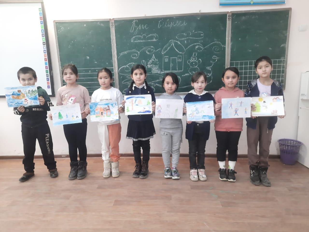 Қысқы демалыс кезінде "Қыс бейнесі" тақырыбында 1-4 сыныптар арасында суреттер байқауы ұйымдастырылды.