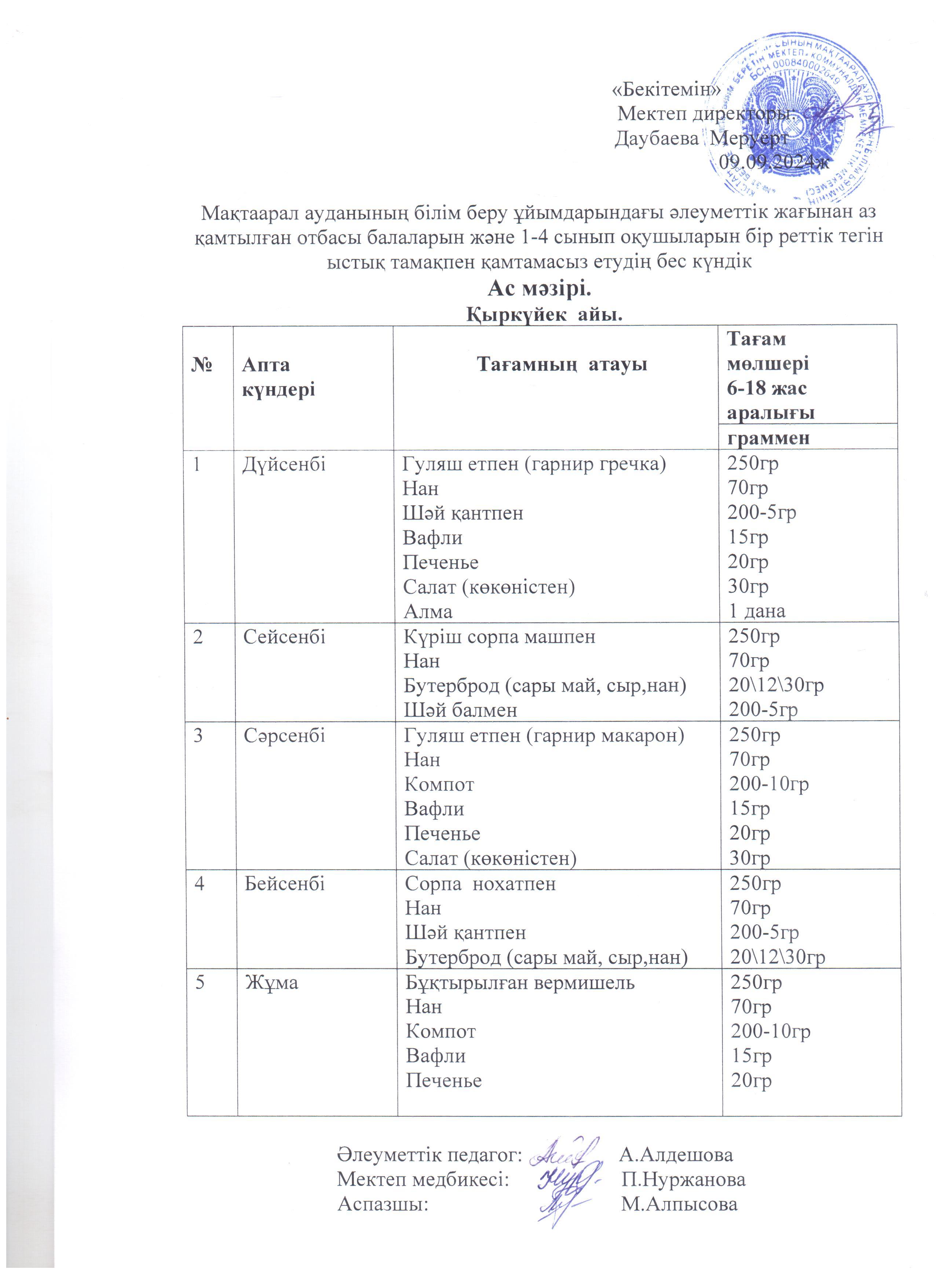 02 қыркүйек 2024 Ас мәзірі