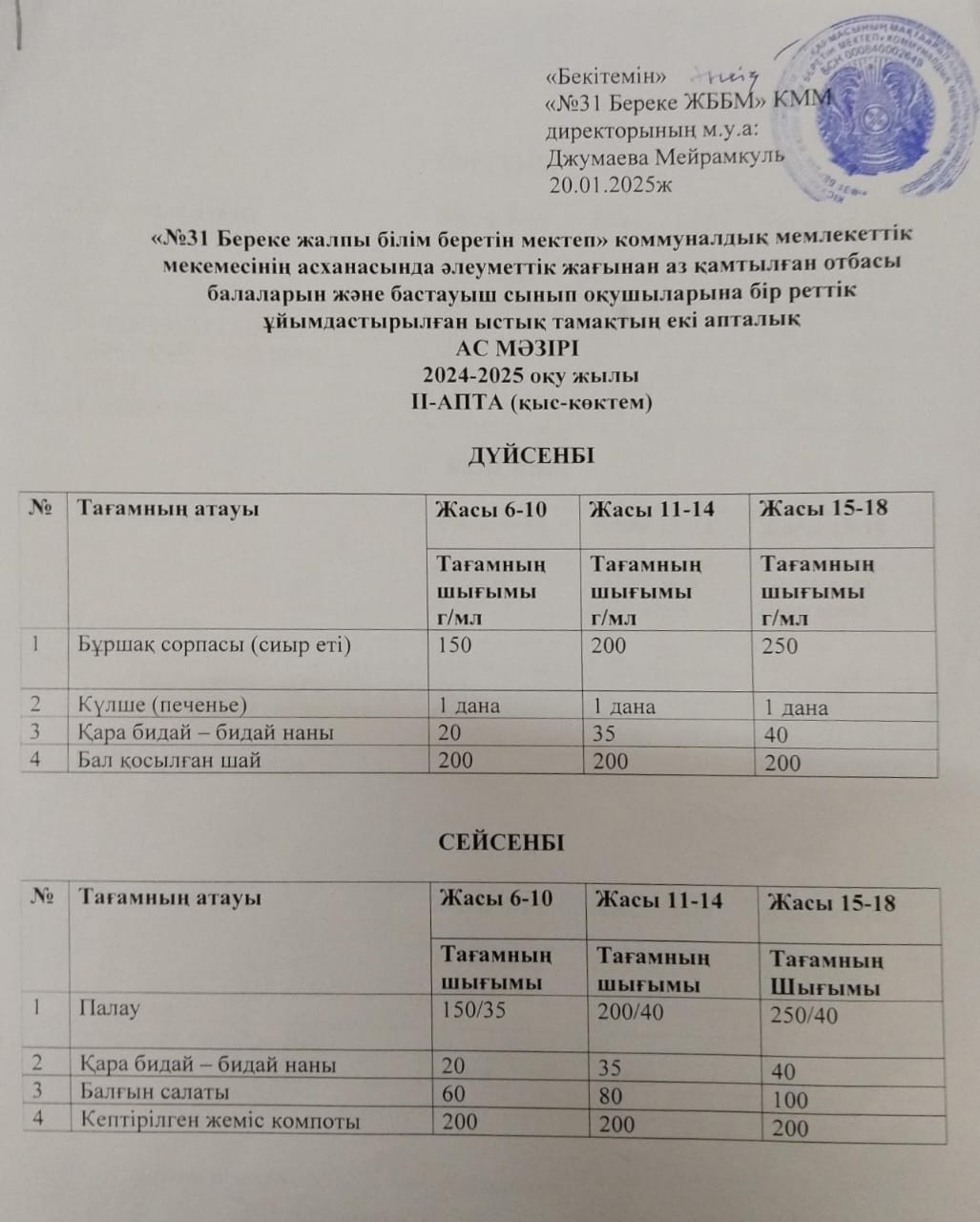 Ас мәзірі » "№31 Береке" ЖББМ КММ