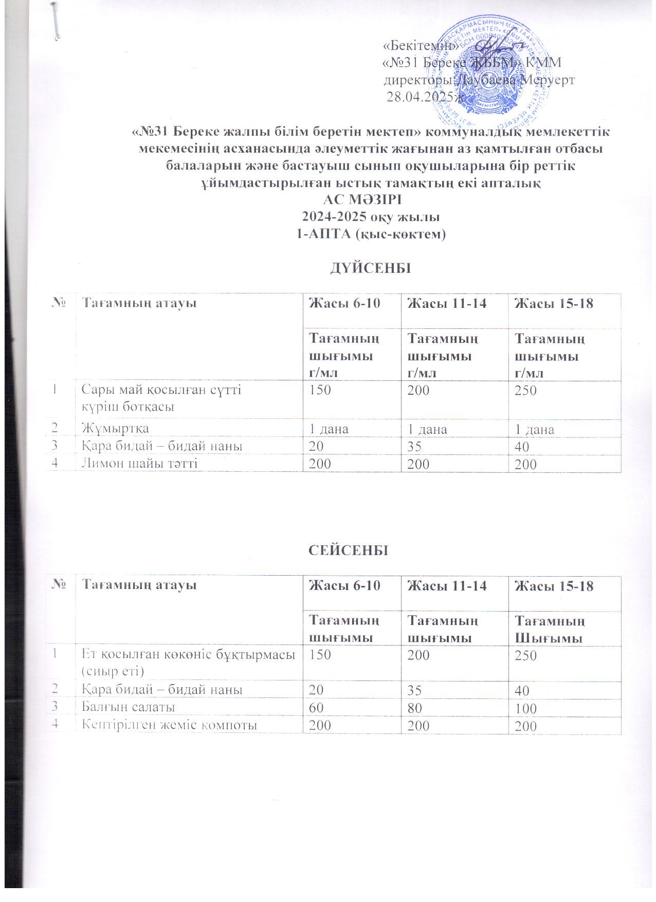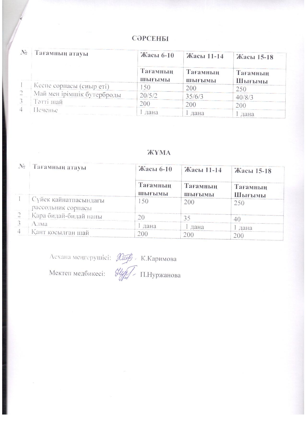 02 қыркүйек 2024 Ас мәзірі