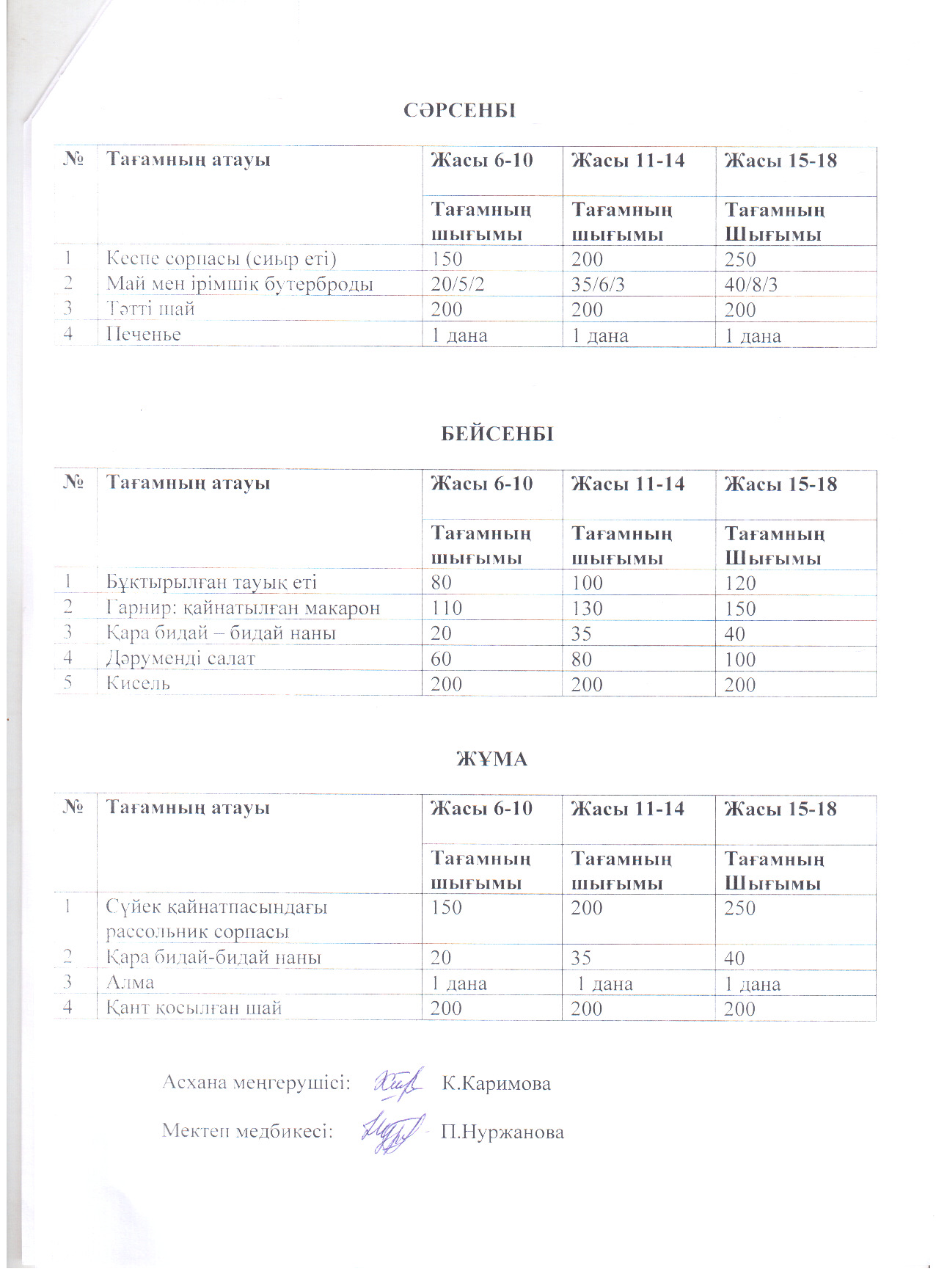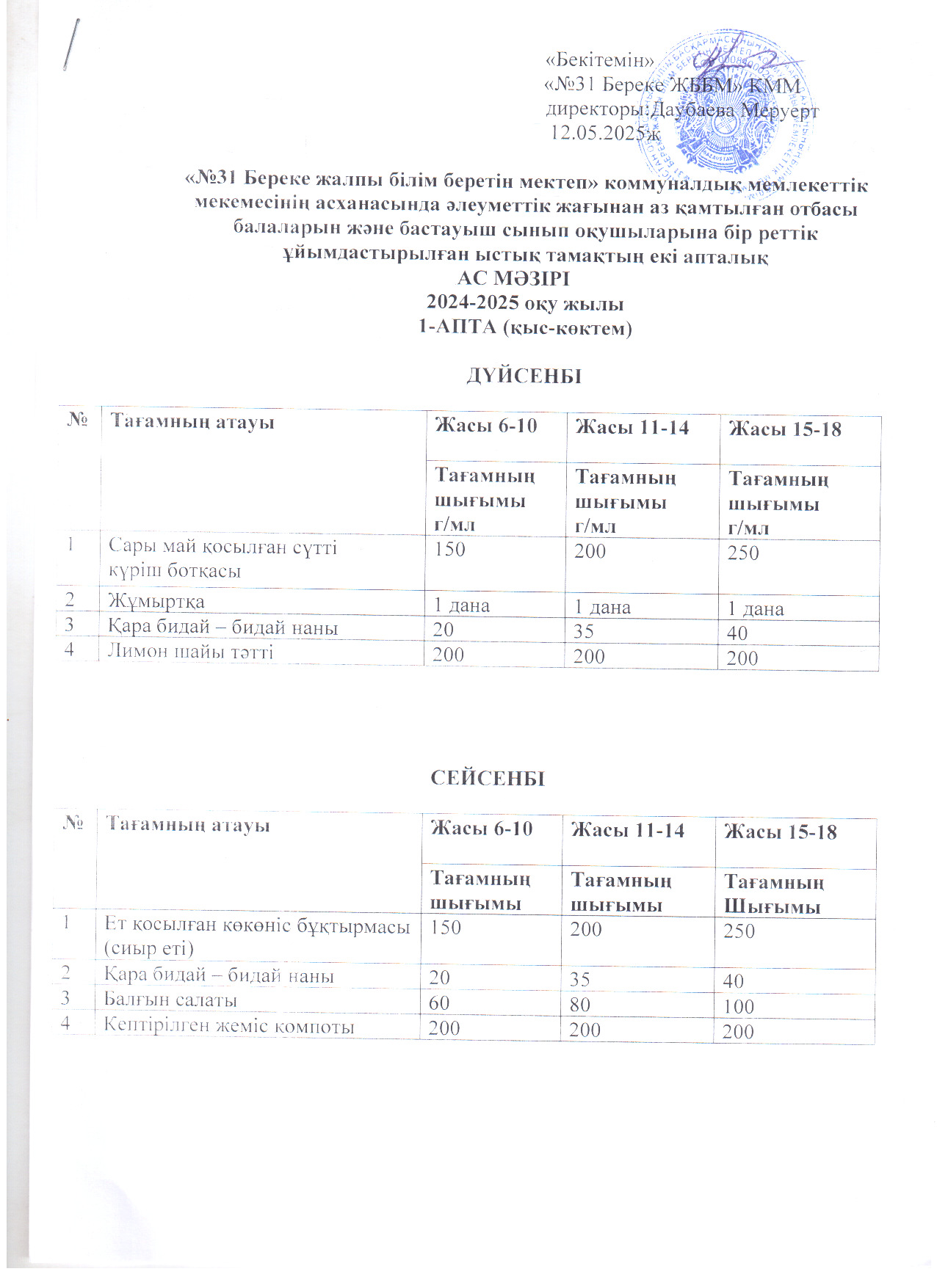 02 қыркүйек 2024 Ас мәзірі