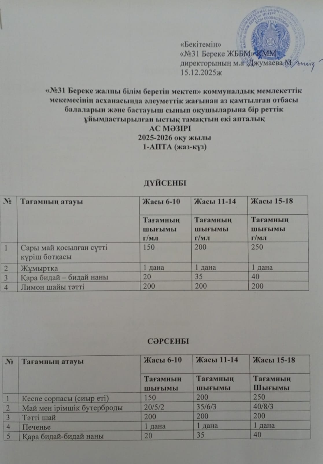 Ас мәзірі » "№31 Береке" ЖББМ КММ